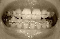 いつものことですが、待ち遠しいです!!もうジリジリしてます!!!特に先月の調整日でパワーチェーンも取ってしまったので、ワイヤー以外の力が掛かっていないんです。>というわけで、あんまり動きはなかったです。とっとと力を掛けてほしいのにな~次回の調整でいよいよ下の歯を右へずらしていくための装置がいろいろと付く予定なので、もうホントに待ち遠しい。上の歯のことも、ちょっと相談したいし。皆さんは、ゆるーく口開けたぐらいで、装置見えますか?私は、上下ともけっこうばっちり見えてしまいます。白黒だし、透明ブラケット+クリアスナップなので分かりにくいかもしれませんが、上下ともちょうどワイヤーの部分が、唇の表と裏の境目ぐらいのところにあたっています。口から装置が溢れている感覚です。口を閉じるには、どっこいしょ、と装置を乗り越えないといけないので、最近コップの水を飲むのがとても難しいのです。普通は唇の裏側にあたってるものなんじゃないのかなぁ。上の歯が下がって(前に出てるだけじゃなくて)来てて、下の歯の装置が歯の上のほうに付いているせいだと思うんですよね。下の装置の位置はしょうがないとしても、上の歯は下がりすぎなんじゃないのかなぁ。横から見ても、奥歯から前歯に向かって、ワイヤーが下向きにカーブしているのがわかります。こんなものなのかしら…。先生に相談してみて、上げられるものならなるべく早い段階で上に上げてもらうようにお願いしてみたいと思います。まだ装置を入れて3ヶ月。まだいくらでも修正はきくと思うので、最終的なことはまったく心配してません。でも、矯正って、『今、しゃべりにくい!』『今、食べにくい!』『今、装置があたって気持ち悪い!!』っていうのを『今すぐ何とかしてぇぇぇっ!!!』っていう気持ちとの闘いですよね。かなり精神的に我慢強くなった気がする今日この頃です。