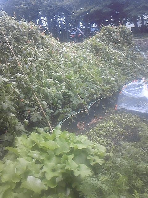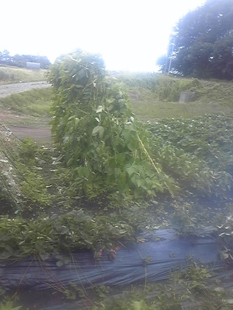 花豆もセンター部分の支柱が折れて  篠竹 弱いね