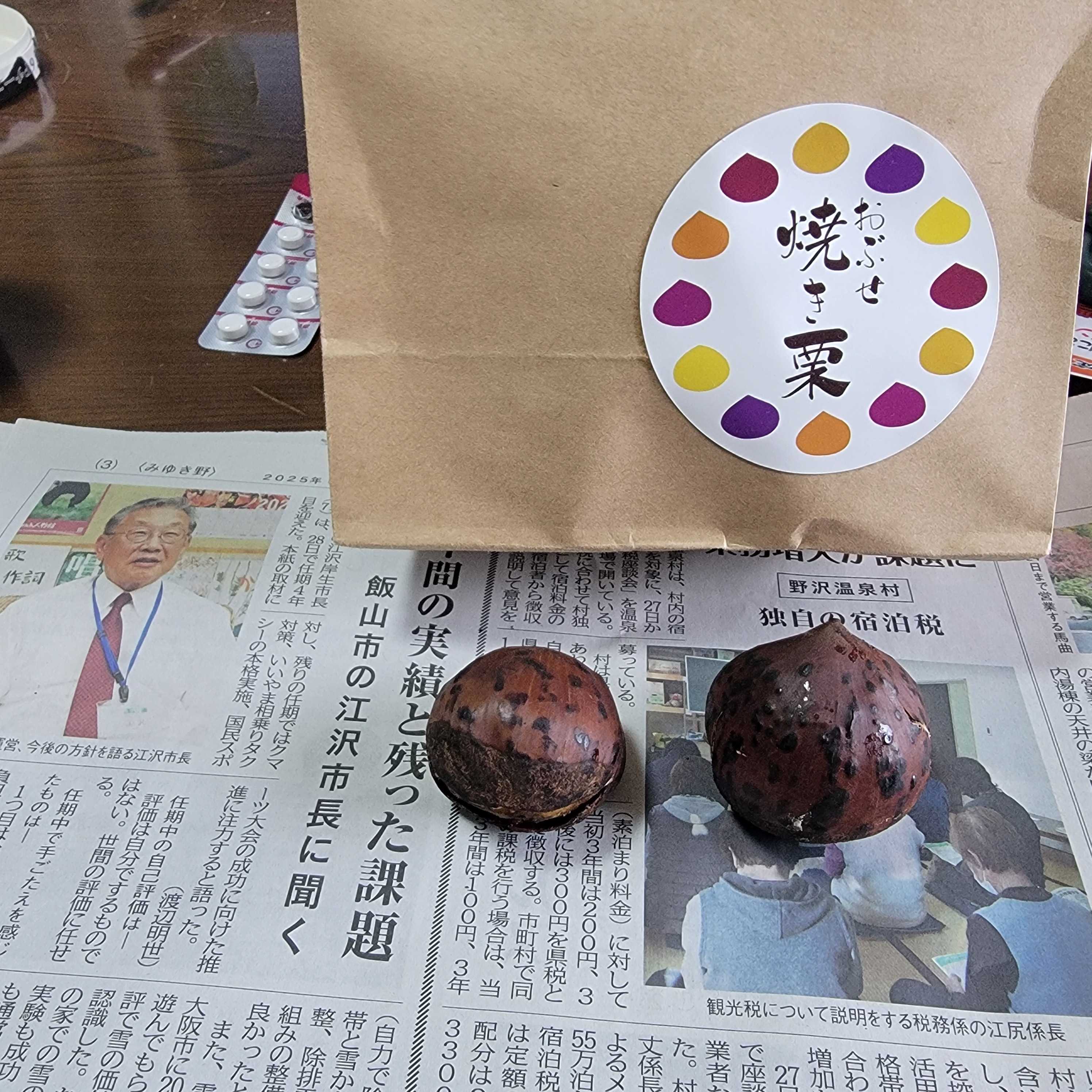小布施へ行った。観光客がたくさんいた。中学生の修学旅行の生徒さんもいた。焼き栗。以前から知っていたが今日初めて買って食べてみた。うまかった。圧力をかけて焼いていた。600g100円でした。次も買ってみたいと思う。