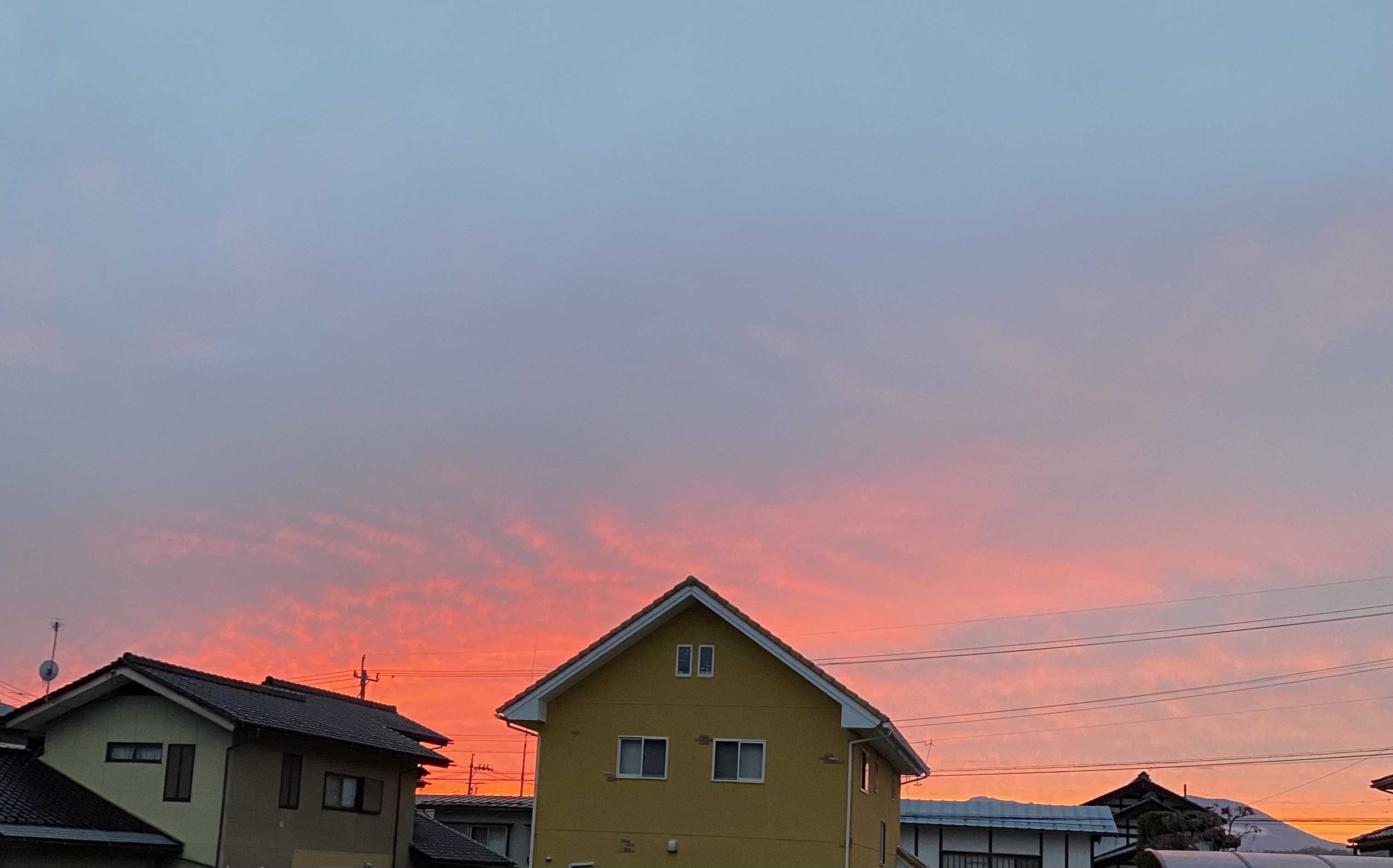 最近は赤い夕暮れがなかったが昨日は久しぶりに赤かった。今日はいい天気になるのだろうか。