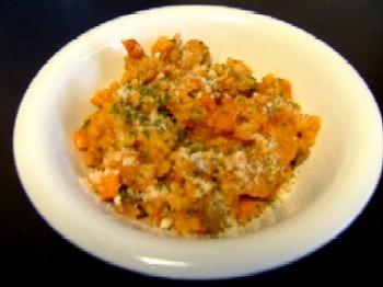 お皿に乗せて、粉チーズとパセリのみじん切りを振れば