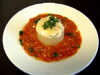 4.温めたトマトソースをお皿に敷き、大根を乗せます。