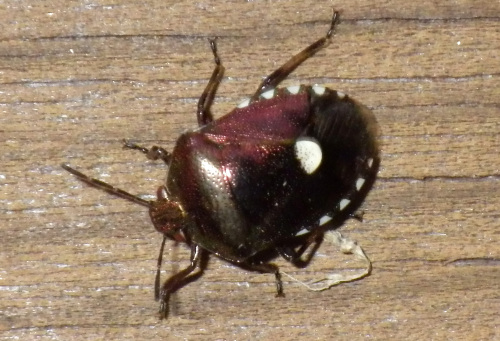 冬を越す場所を探していたのでしょうか。寝屋川市野外活動センターの事務所の外壁を歩いていました。背中の真ん中に白い斑点。お腹に廻し。体の色はメタリックな暗紫色。ツマジロカメムシです。2013.11.25 寝屋川市野外活動センターにほんブログ村人気ブログランキングへ