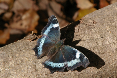 昨日の写真からルリタテハです。むろいけ園地は休日で下草刈りが行われていた。開けて陽光の射す伐採木の上にルリタテハが降りてきました。ゆっくりと翅を開いて日向ぼっこのようです。2013.11.26 むろいけ園地にほんブログ村人気ブログランキングへ