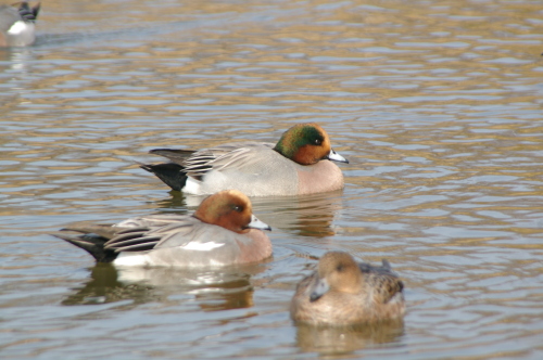 今年も打上緑地の池にヒドリガモの一群が飛来している。昨年はこの中にアメリカヒドリが一羽混ざっていた。今年はどうかなと出かけてみると、ヒドリガモの側頭部が緑色の交雑種が混ざっていた。昨年のアメリカヒドリの子供なのかもしれない。2013.12.02 打上緑地公園にほんブログ村人気ブログランキングへ