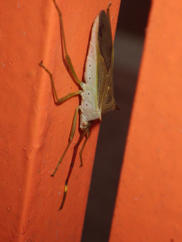 四条畷神社の本殿の裏側に小さな赤い鳥居の並んだ稲荷神社がある。その手水舎の赤い柵の隙間にカメムシが1匹越冬中?だった。オオクモヘリカメムシだと思って撮影したが雰囲気が少し違います。南方系の種でミナミトゲヘリカメムシのようです。沖縄ではシークワーサーの害虫だとか。最近北上を続けて紀伊半島ではミカンの害虫となっているようです。このカメムシがこのまま冬を越せるのかどうかは分かりませんが、この辺りでもこのような格好で杭にしがみついているのをときどき見かけます。2013.12.28 稲荷神社(四条畷市)にほんブログ村人気ブログランキングへ