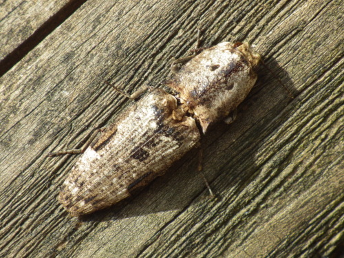 京都STIHLの森(南丹市)、観察の森と散策の森がある。森の広場では皆さんバーベキューを楽しんでおられた。観察の森の木柵にいたのはコメツキムシ。初めてお目にかかる模様だ。木柵の模様に溶け込んでいる。ウバタマではないように思う。写真に撮ったあとで触ってみると触角と足を格納して死んだふりをして固まってしまった。 帰ってから調べてみると、フタモンウバタマコメツキという名前のようです。図鑑には照葉樹林で見られることが多く分布は局所的で数は少ない、と書いてあった。フタモンウバタマコメツキ2014.05.24 南丹市 STIHLの森にほんブログ村人気ブログランキングへ