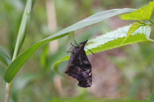 昨日のほしだ園地、前の日の雨で下草はまだ濡れていた。あちこちの笹の葉の下で羽化していたのはテングチョウ。テングチョウの蛹ってこんなに小さいんだ。あたりは湿っていてまだまだ動き出す気配はありませんでした。羽化したてのテングチョウ2014.05.27 ほしだ園地にほんブログ村人気ブログランキングへ