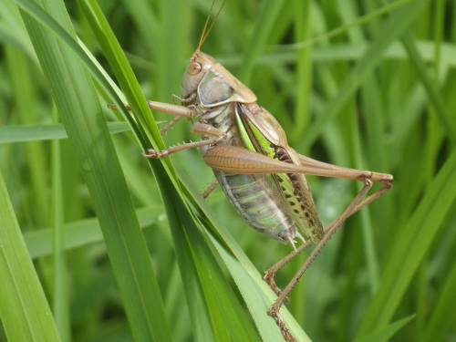 学ぶ会で伊吹山へ。頂上付近で激しい雨に見舞われやむなく早々に下山。エコミュージアム関ヶ原付近の草原で鳴いていたキリギリス。どういうわけか近寄っても逃げずに鳴いていた。 キリギリスは最近、ヒガシキリギリスとニシキリギリスに分けられるようになったそうだが、このあたりにいるのはヒガシキリギリスかな。2014.08.06 関ヶ原町にほんブログ村人気ブログランキングへ