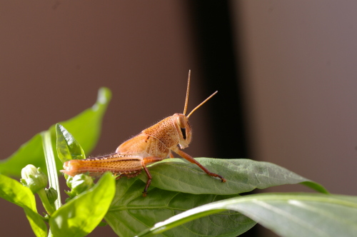 ベランダのパプリカの葉の上にいたツチイナゴの幼虫。たっぷりと朝の光を浴びていました。なぜここにツチバッタがいるのか?1カ月ほど前、水槽に入れていたオタマジャクシがカエルになリ、その餌として数匹の小さなツチイナゴを採ってきたのだが、カエルのほうが小さすぎて餌にはならず、ベランダに逃げ出し、鉢に植えてあったオオバの葉を食べて命をつないだのでした。2014.08.30 寝屋川市にほんブログ村人気ブログランキングへ