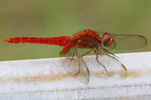すこし雨も遠のいたようなので、虫探しに出かけてみた。飯盛霊園はお盆が近いのでお墓参りの準備中。裏の出口の小さな小川と田んぼのある所に真っ赤なトンボと黄金色のトンボが飛び交っていました。ショウジョウトンボのようです。名前のショウジョウはカイガラムシから採れる赤い染料の猩々緋からきているそうだ。赤いのはオスだけでメスは透き通るような黄金色だ。顔まで真っ赤なオス黄金色の上品なメス2014.08.04 飯盛霊園にほんブログ村人気ブログランキングへ