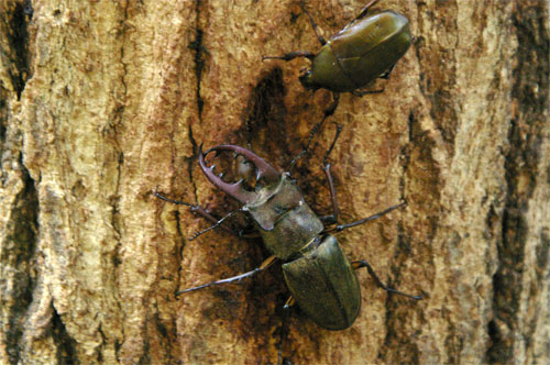 くさか園地に降りていくと今度は、クヌギの幹で雌のクワガタに出会う。この幹の樹液は枯れているが、においはあるのだろう。幹の周りを回っていた。