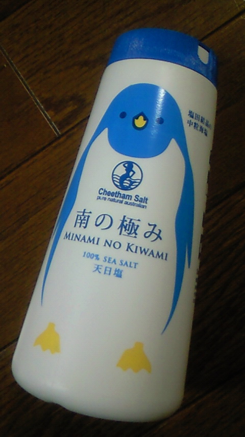 南の極み!って塩なんですけど・・・ただ単に可愛いかったから買ってみました!ネットでは販売してないようなので画像だけで…原材料名に『海水』って書いてあるのが何か楽しい!!お店で探して下さい。。。
