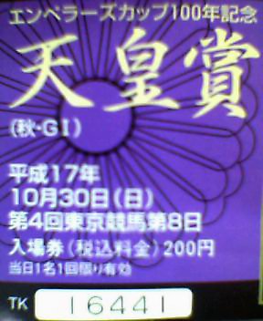 当てました。買った馬券、馬単1着流し10-2・7・12以上3点。しめて300円。結果、1着 10・カネヒキリ、2着 7・シーキングザダイヤ。2着が11番人気だったので配当は意外について68.9倍でした。着差がハナ差だったので確定するまではヒヤヒヤでしたが、とりあえずよかったよかった。あ、それと東京9Rに出てたキンタマーニという清潔感漂う名前の馬の単勝馬券をK沼氏にもらったけどかすりもしませんでしたわ。とにかくこれで明日のJCに結構ぶっこめそうです。というわけで、JCの予想なのですが、全く絞れてません。とりあえず現時点での予想は、◎ゼンノロブロイ・ハーツクライ○ベタートークナウ・アルカセット・タップダンスシチー△ウィジャボード・スズカマンボ・アドマイヤジャパンてな感じ。ね、絞れてないでしょ。なんだかんだで今回は堅い予想になりそうな感じです。タップが大逃げでまさかの大逆転劇、という劇的展開にかけてみようかとも思ったのですが、意外に人気あるね。やめとこっかな。それと個人的にベタートークナウが来そうな気がしてならない。特に根拠は無いんだけど。あとロブロイにはそろそろ来てもらわないと。今みたいに古馬がぐちゃぐちゃの状態じゃ有馬が盛り上がらないからね。ディープvsロブロイの2強対決で盛り上がるためにもロブロイには今回のレースで古馬最強を証明してほしいもんです。とにかく明日までにもっと絞らないといかん。予想屋M岡の意見も聞いてみようかな。それと明日は競馬初参戦のS川くんも来るので彼のミラクル万馬券にもちょっと期待。前回のマイルCSで3連単的中の爆笑問題の片玉野郎には負けてらんねー!明日のこの日記でG1・3連勝の報告といきたいもんです。