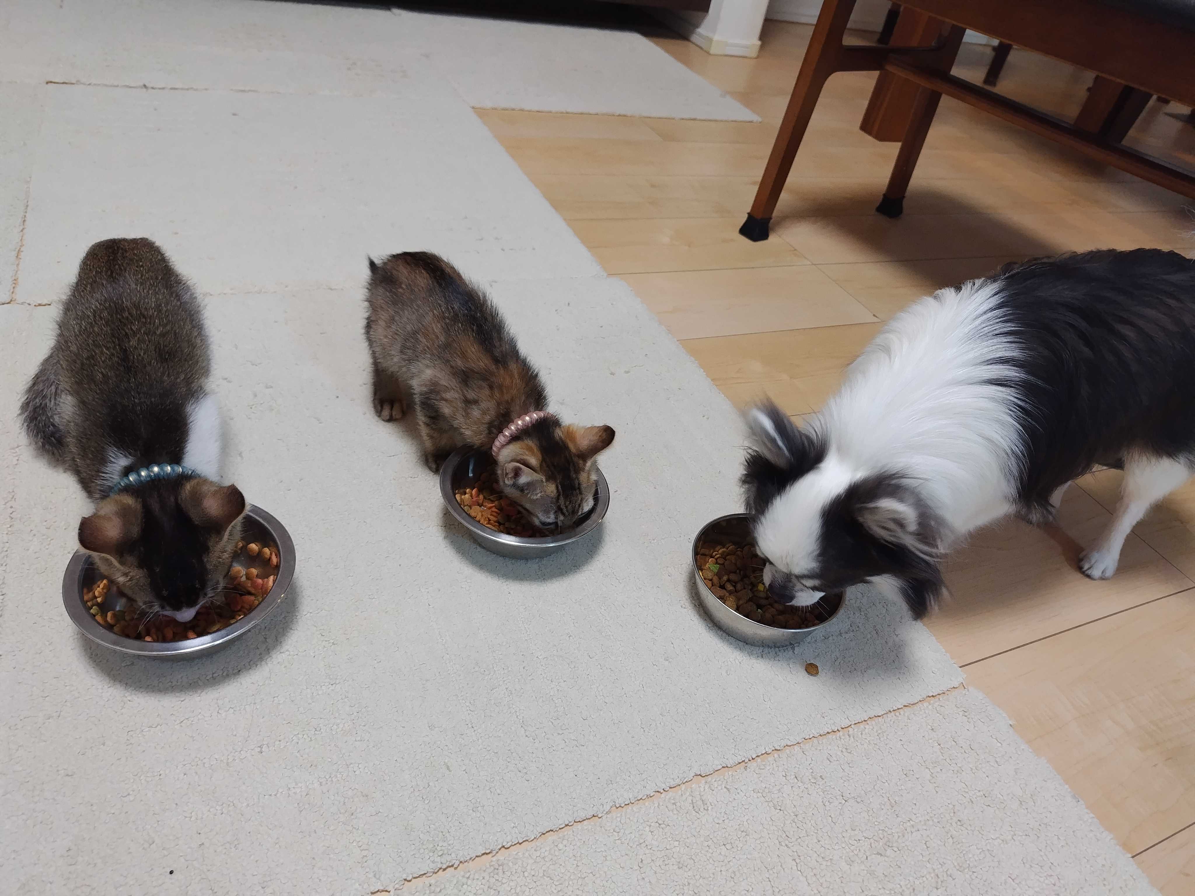 猫ちゃんずのごはんを、ワンコが食べたがり