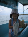 昨夜は旅行帰りでハイテンションだった彩香ですが、今日は幼稚園でした。朝は7時半過ぎに起こし、少し時間がかかりながらも着替えていました。パパが休みだったので彩香を幼稚園まで送ってくれるというので、幼稚園に連絡しで送ってもらいました。彩香はすっかりご機嫌でいつもより早く幼稚園に行きました勇輝は今日は少しグズグズでした。抱っこすると泣き止み、降ろすとまた泣いたりして甘えていました。一緒に少し遊ぶと満足して1人で遊んでくれるましたが、しばらくするとまた泣いていました。勇輝も疲れたかな?相変わらずイタズラが好きな勇輝ですが、旅行当日パパの部屋に行ったと思ったらスッパイマン(干し梅)の袋をひっくり返して中味をぶちまけているし、すぐ追いかけていったので口に入れることはありませんでしたが、好奇心旺盛なので大変です夕方みんなで買い物に行き、冷凍のものと牛乳などは急いで冷蔵庫に片付け、野菜を袋に入れたままにしていたら、レタスをつまんで少し食べていました今日は離乳食、朝はバナナ、昼は取り分け出来るメニューがなかったのでベビーフードをあげてしまい、買い物に行く前にミルクを夕方200cc飲んだのですが、晩ご飯にシラス粥と豆腐の味噌汁、ほっけを少々あげました。明日は、野菜をちゃんと食べさせてあげなくちゃ。ご飯を口に運んでいると、早く食べたいのか「あー、あ~」と声を出して催促。パクパク食べていました。お粥もお味噌汁も完食して勇輝はおしまいにしたのですが、椅子に座らせたままにしていると、まだ欲しい顔をしているのです。ママのお味噌汁の豆腐を分けてあげると喜んで食べていました。結局、ママの豆腐ほとんど食べられちゃいましたパパも勇輝も食欲には驚いていました。パパがお休みで家にいると彩香も嬉しいようで、パパと遊んだり手紙を友達に書くのに勇輝がイタズラをすると「パパ、勇輝見てて!」と頼んで手紙を書いたりしていました。涼しくなったのでお風呂を沸かし、パパが彩香と勇輝を入れてくれました。助かりますねぇその後勇輝におっぱいをあげながらベッドで寝かしつけしていたら、ママもそのまま寝ていて2時半過ぎに目が覚め、お風呂に入りアイロンがけをしたりして起きています。さすがに夜中から起きていたら1日持たないので、これから少し寝ます勇輝にはもうおっぱいやミルクは飲み物でしかないんだなぁと思い、なんだか複雑な心境です。↓旅行の写真追加です全部で60枚ぐらい写真撮っていました。ガラスボートに乗ってお魚持っています。写真撮った後、は海に返してました。