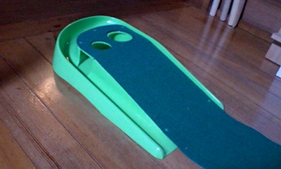 パター練習機を買ったのは去年の9月。それまではゴルフ場のパター練習場で、プレイ前に少し練習するだけでした。しかし、練習機を買ってコンペ前の4,5日、自宅で練習したら3パットがたった1回!3パットは普通、1ラウンドあたり多くて、4,5回、少なくても3回ぐらいするのですが1回ですみました。その後のプレイでも2回ほどに収まり、パット数も30台前半から半ばに収まっています。