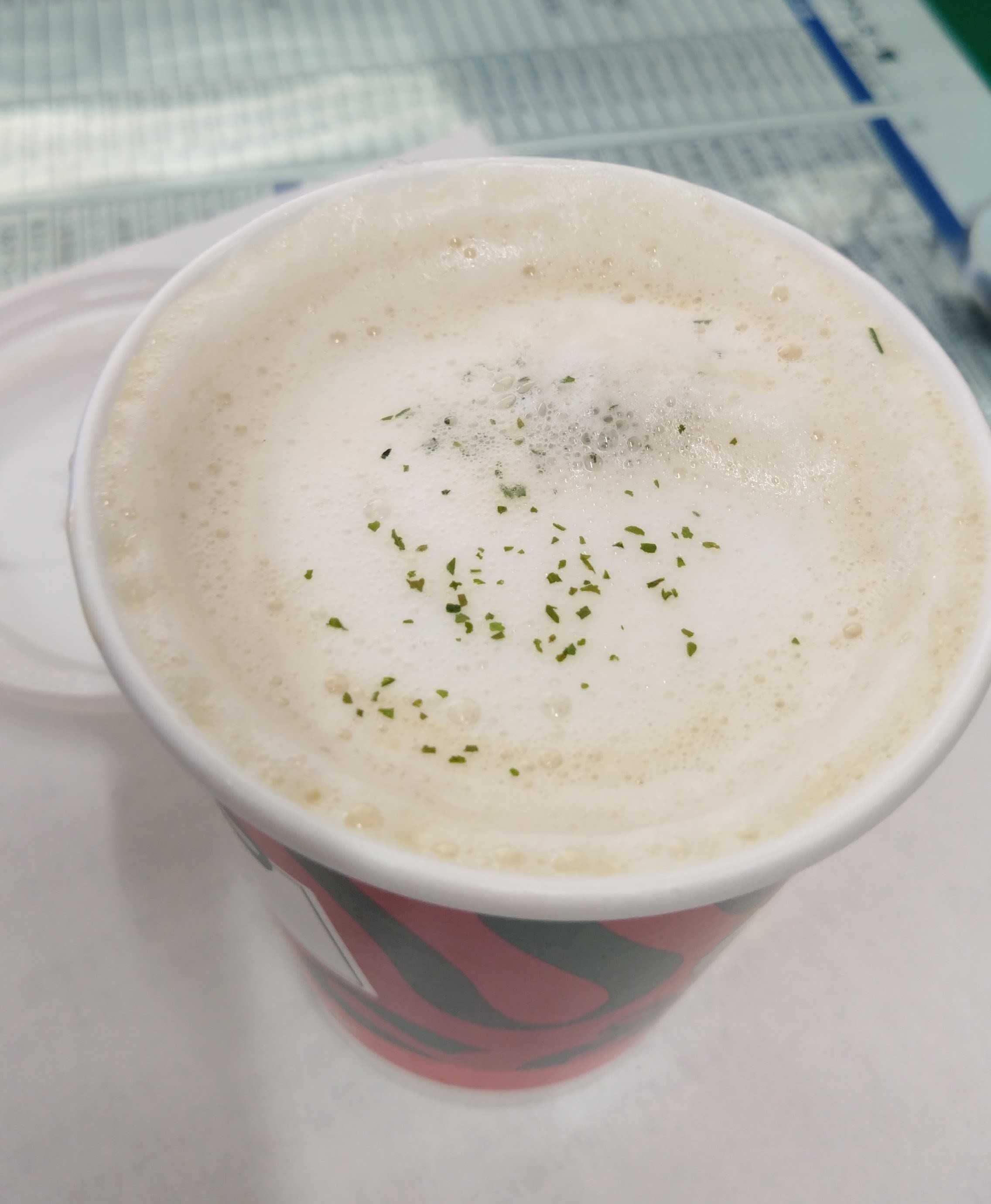 スタバの初スープメニューですふわふわのミルクにトリュフなどのキノコ類がはいったブイ…
