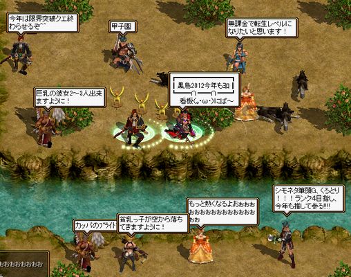 みなさん明けましておめでとう!!!去年お世話になった方々、こんな変態紳士な族長ですが今年もどうぞよろしくお願いします<(_ _)> 今年の年越しは黒鳥Gメン達と古都西口で盛大に花火を打ち上げてお祝いしました\(^o^)/ 昨年はランク4まで行ったので、今年はランク5目指してがんばるぞおおぉぉぉ!!! ・・・え?なんで年越しをRSを迎えてるのかって??普通なら彼女と初詣でだろって??(´・ω・`)そんなん知らんがな・・・ほっとけや (´・ω・`)ん?何強がってんねんて??全然強がってないわ、あほちゃうか (´・ω:;.:... あ、あほちゃうか・・・ ;.:... そして族長は2次元の世界へと旅立った・・・・ さーーーて、気を取り直してたまりにたまったネタSS放出いっくよーー\(^o^)/ -------------クラたんの挑戦--------------- それはミニペット開封の瞬間・・・・光か闇を出ることを切に願うロリウス神様!はたして結果は・・・ メッシマズ!メッシマズゥゥゥ!! これはああああああああ超期待wwwwwwwwwwwwwwwwドキがムネムネしちゃう/// ( ´,_ゝ`)プッ プギャ━━━━≡≡≡≡≡⊂`⌒m9^Д^)⊃━━━━!!!!!! -------------異次元への挑戦--------------- 未だかつて見たことがない測定不能の異次元品!成功したらNX化して俺TUEEEEEするんだ・・・という夢を抱いて新年早々混ぜ混ぜしてみました!! はてさてどうなったのやら(´・ω・`) 運比率速度が測定不能に付いたら濡れちゃうwwwwというか噴いちゃうwwwwwwいっけえええええええええええええええええぇぇぇマグナアアアァァァァァム!!!! ユニバアアアアアアアアアアアアアアアアアアァァァァァス!!!!\(^o^)/ -------------White Bear--------------- 白っちからの愛の告白イシスのGHで雑談してたときの発言!!毎日見てくれていいんだからね(´∀`*)ポッ ・・・・・とか浮かれていると それはある日の事じゃった・・・GHで放置して寝て朝起きてログみてみると・w・? `;:゙;`;・(゚ε゚ )ブッ!! 寝起き10秒くらいで吹きましたwwwww なんでわざわざGHまで変態変態言いに来るねんwwwwwwしかも本当に変態やから言い返しもでけへんやんけwwww(しかもうちのGメンも変態言われてることに対して同意してるし・・・目から塩水がww) _| ̄|_ //ヽ\ | '|/ / ノ "´ ̄ ̄''''‐-...ノヽ |__|'' ̄! ! / 丶 | ,‐´ .ノ'' / ,ィ \ ヽ-''" 7_// _/^ 、 `、┌───┐ / / 、_(o)_,;j ヽ||┌─, .| /. - =-{_(o)└┘ ノ ノ |/ ,r' / ̄''''‐-..,> // { i' i _ `ヽ  ̄フ i' l r' ,..二''ァ ,ノ n / 彡 l /''"´ 〈/ / ll _ > . 彡 ;: | ! i { l| \ l 彡l ;. l | | ! |l トー-. !. ; |. | ,. -、,...、| :l ll |彡 l ; l i i | l ll iヾ 彡 l ;: l | { j { |l { 彡|. ゝ ;:i' `''''ー‐-' }. n. n. n l 彡 ::. \ ヽ、__ ノ |! |! |! l彡| ::. `ー-`ニ''ブ o o o l :. | -------------性戦士ロリウス神--------------- 今年も黒鳥のGMがんばってね!ロリウス神様(`・ω・´)ゞ どうやらロリウス神様には地震を起こす力があるようです・・・どうかそのイチモツをお沈めください((((;゚Д゚))))ガクガクブルブル -------------闘士3姉妹--------------- まだまだ数少ない闘士ですが、これからも闘士普及活動がんばっていこーね^^b -------------轢きたくなっちゃうよね!--------------- 飲んだら乗るな!!轢きたくなるから乗るな!! 車に乗るときは心理状態を大切に!!! 最後に近況報告ぅ! 4転しました(∩´∀`)∩ワーイ 今年の目標!! 今年もスカーレットルビー鯖 最強火力闘士 を目指していくつもりなのでそこんとこヨロシク( ´∀`)bグッ!