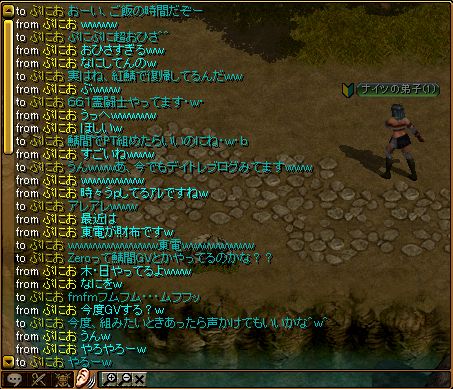 この間交流GVしてから、もともとあったGV魂に火がついてしまいまいた\(^o^)/ もう、いても起ってもいられず、急遽留学することに♪ テキトーに叫ぶだけでもすぐに耳もらえるのは霊闘士の特権ですね^^b 色々耳もらいましたがダメGさんのところにお世話になることにしました\(^o^)/ 2週間ほどかと思いますがよろしくお願いします!! で、入ってから2回くらいGVでたけど1回は必ず死ぬwwうん、私運闘士なんだ・・・他の霊術師さんは健康型が多いだろうけど・・・ でもでも!!闘士になれば微火力くらいにはなります!! GVでのダメ1000↑を確認!!!!こんな数字闘士でないとダセマセン・・・2年ぶりくらいにGVやり始めたのでまだまだ勉強不足ですが、せめて死なないようにはなりたいと思います><; ↓こよたんの黒鳥での日常(早くもイヂられキャラに・・・