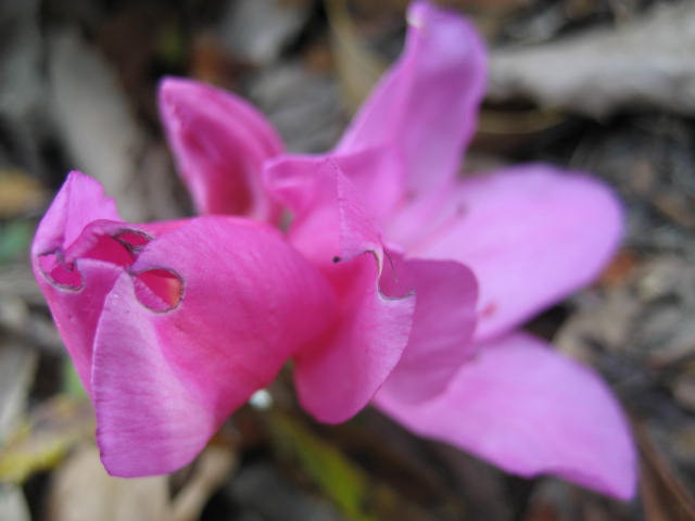 ツツジの花びらが落ちているのを見つけて撮りました。
