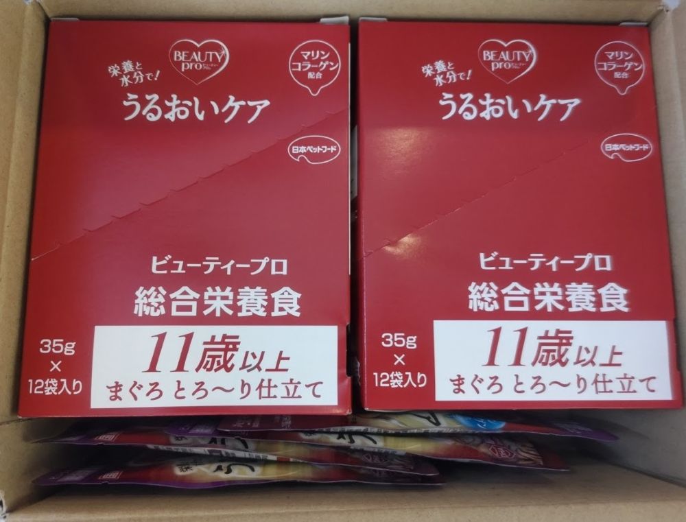 日本ペットフード びゅ11歳以上に続いて15歳以上のお試し我が家のニャンズは17歳と18歳なので本来こちらがピッタシと言う事です賞味期限は2年ほどあるので体調良くない食欲落ちた時メインに使います濃い目のスープ状で咀嚼落ちてる子にも良いと思います固形物の無いドロッとしたスープ状なので舐める事だけで食べれてしまいますシニアにゃんこのいざと言う時の健康のお供に欠かせないフードじゃないかと思います因みに我が家ではここにビオフェルミン混ぜ込んで食べてもらってます愛猫には健康に長生きしてほしいと願うのはどこの飼い主さんも同じだと思いますでも健康に長生きして貰う手助けができるのは飼い主だけです若い時からシニアになった時の食生活思い描いて育てていくのも大切な事だと思います健康の基本となるフード類には気を配ってあげたいですね日本ペットフード ビューティープロキャットパウチ15歳以上35g×12個 ペットキャットフード ビューティープロ キャット パウチ 15歳以上 35g×12袋【48個セット】 日本ペットフード ビューティープロ キャット パウチ 15歳以上 35g【送料無料】