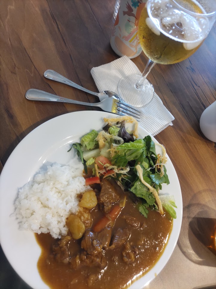 さて本日は美味しい自炊飯のご紹介コスコの高級ステーキを使ったサイコロカレーライスカウンターにサラダと炊飯器とサイコロステーキカレー並べて各自ビュッフェ方式で自分の食べたい分だけ盛り付けてます因みに私は真昼間からワインとビール呑みながらカレーメインに白ご飯ちょこっとで3回ほどお代わりしましたHawaiiはジャガイモが美味しいので自炊のカレーの美味しさが半端無いのでお勧めですとある日の簡単ディナーは冷やしソーメンとお稲荷さんそして、かき揚げの天ぷらこれめっちゃうめぇぇぇ~~~でございました予約していたD&Dの予約人数が5名から7名に変更になるので雨の降る中Bikiに乗って店舗まで出かけて直接変更して貰いましたディーン&デルーカ入ったところレストランへは奥のエレベーターで上がるかその横の階段利用します予約変更オープンテーブルからでも電話でも出来たんですけどここに来たかったのと、Bikiに乗りたかったと言う単純理由で直接出向いた喉乾いたので喉潤しますレモネードコーヒー???やったかなま、ちょっと微妙な感じではありましたがそこは、ここはハワイ飲んで飲めない事は無いと、硬く自分に言い聞かせてたそう少々の美味い不味いなんて自分の気持ち次第なのだよ