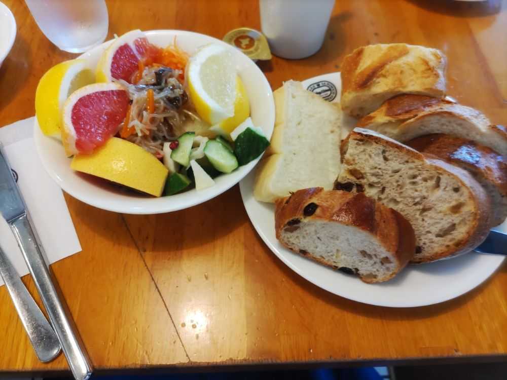 久し振りに神戸屋さんでランチしてきました神戸屋レストラン御影店勿論お目当てはサラダとパン食べ放題のランチですメインも何かオーダーしようと思いましたが節約しようとパン、サラダ食べ放題にスープの付いたサラダランチオンリーにしました※食べる事に夢中で写真は2枚ポッキリでしたこちらの食べ放題システムはテーブルに運ばれてきたサラダ・パンそれぞれの専用プレートで食べ放題時はずっと一枚の器使うシステムですお腹空き過ぎてたのでサラダの盛り付けがなんとも荒い大好きなグレープフルーツも最初からてんこ盛りフルーツは他に生パインもありますデザートもコーヒーゼリーとミルクゼリーが有るのでこれで全て事足りますパンの一皿目は全部乗せの7個でスタートそのあと3個追加と2個追加で合計12個食べた勿論サラダもデザートまでたっぷり食べました女子3人でワイワイガヤガヤムシャムシャ、美味しくてめっちゃ楽しかったーお会計はこれにドリンクつけて一人1980円因みにパンが胃袋内で膨らみまくりで夜もお腹空かずに夕食抜きとなりました1980円で2食分、コスパバッチリとなりました