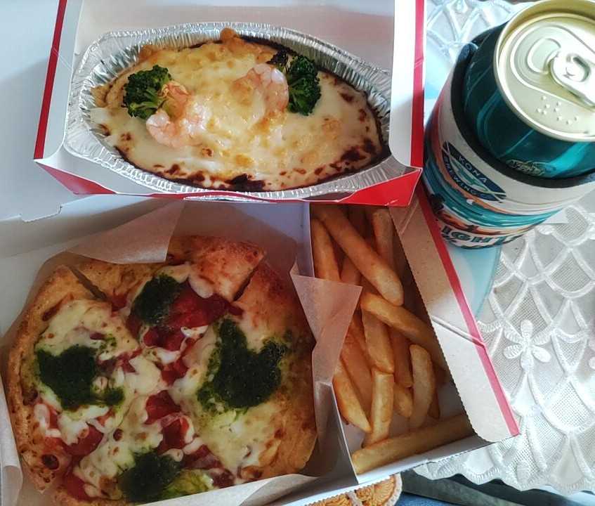 今日は文化の日は、全く関係ないけど、ランチにピザハットオーダーしてみた😋🍴💕ミニピザとポテトセットが500円エピとマカロニグラタンはクーポンでゼロ円エビスビールと500円ポッキリのピザハットランチ幸せな休日でござい~~~~(*˘︶˘*).。.:*♡