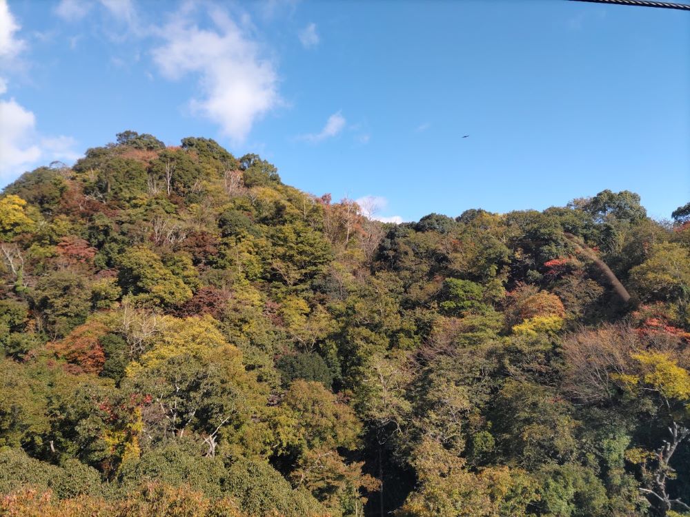 ちょっぴりだけ赤くなってる鬱蒼とした山肌