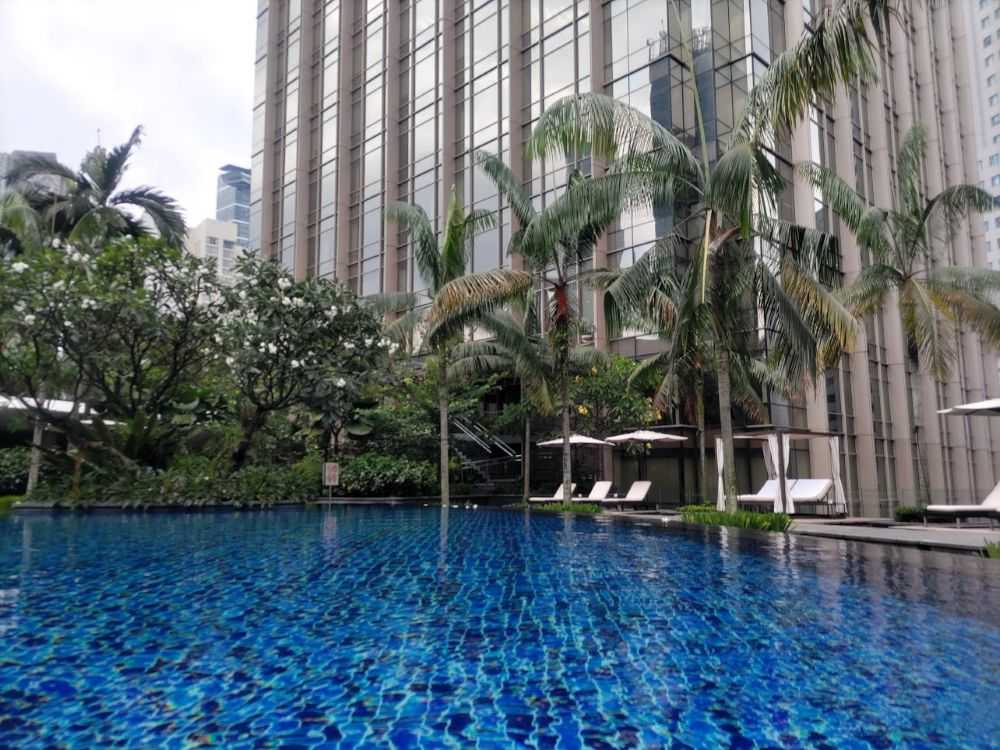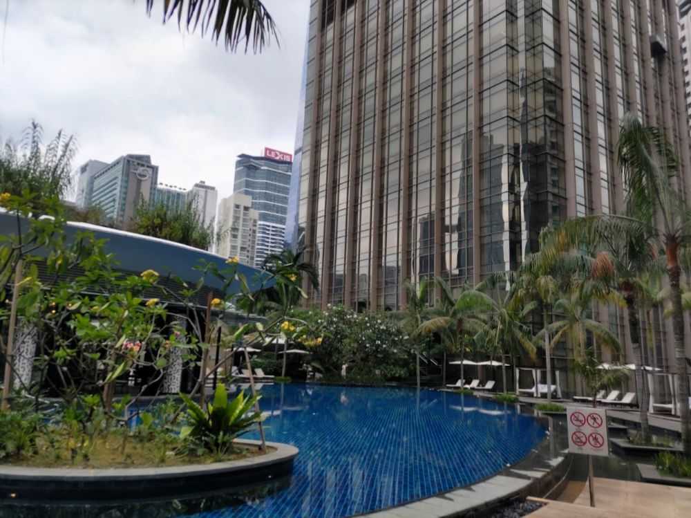プールは2階にあるので高層ビルで取り囲まれてます