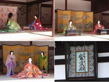 今日は、朝大阪中央郵便局に83円の年賀切手を買いに行き、その後、京都へ行き、御所の一般公開、京都府庁旧館の公開などを見た。烏丸丸太町近くの間ノ町口から京都御苑に入ると、閑院宮邸跡が公開されていたので、まずここを見た。3年前から保存のための改修が行われていたが、今年3月に竣工したばかりだそうだ。閑院宮は、伏見宮、桂宮、有栖川宮とともに四親王家の一つ。京都御所に入るのは3度目だが、1回ずつ新しいものが見られる気がする。今日は、御所の生活を忍ぶ人形たちと襖絵、戸板絵などが新鮮だった。観覧者は多かったが入場のための待ち時間もなく入れた。コースは、宜秋門、御車寄、諸太夫の間、新御車寄、建礼門、承明門、日華門、紫宸殿、清涼殿、小御所、蹴鞠の庭、御池庭、御学問所、御常御殿、御内庭、御三間、清所門で、全行程を40分くらいで廻ることができた。建物、庭、襖絵を中心に100枚ほどの写真を取ったが、ここでは、人形と戸板絵を紹介する。写真は、諸太夫の間の囲碁をする女官、読書する女官と詩を書く女官、女官と童女、紫宸殿の額。写真は、清涼殿の采女、十二単と小袿、小御所の唐衣、御常御殿の戸板絵(蹴鞠)写真は、御常御殿の戸板絵(曲水の宴、雅楽)、御三間の戸板絵( 、 )秋の色 御常御殿の 御内庭烏丸通に面して御苑と反対側に小さい神社だが護王神社というのを見つけた。和気清麻呂など4柱を祀る。御所の守護神だそうだ。面白いのは境内にいくつかの霊猪像があることでいのしし神社とも呼ばれているという。来年は亥年なのでこれから新年にかけて賑わうことだろう。猪を中心に写真20枚を撮った。次に、京都府庁旧館へ行った。ここの公開は3年前から春・秋の2回行われているそうだが、私は初めてだった。特に見るべきところは、全体の建物のデザイン、正面の大理石の階段、知事室の装飾と家具類などであった。写真を40枚ほど撮って来た。これらの写真は、明日以降に掲載する予定。