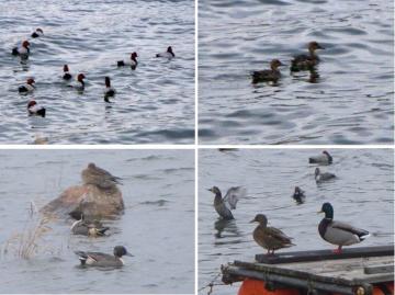 今日は、午前中、淀川の探鳥会に参加し、午後は、写真の整理などをした。少し雨が降る天気となり、参加者は少なかったが、水鳥を中心に多くの鳥を見ることができた。十三大橋付近では、ホシハジロの群に会い、さらに、空を飛ぶ500羽ほどの群を見ることも出来た。大阪地方の鴨の個体数の7割くらいはホシハジロだそうだ。ホシハジロの群に混じって、オカヨシガモ、モガモなども見られた。十三干潟では、オオバンがたくさん見られた。柴島干潟へ行く途中では、ツグミ、ハクセキレイ、キジバト、ダイサギなども見られた。柴島干潟には、ヒドリガモ、オナガガモ、カルガモ、などがたくさんいた。その他、アオサギ、ユリカモメ、セグロカモメ、カワウの姿も見られた。 探鳥会の先生たちはいろいろな鳥を見つけ、我々に見るように教えてくれるので、一人では見つからない鳥でも見ることができる。上記の鳥はこうして教えてもらったものが多い。しかし、どこにいるのか探しているうちに、見えなくなってしまうものも多い。下記は、そのような鳥である。カンムリカイツブリ、ダイサギ、コガモ、コサギ、モズ、ホオジロ、オオジュリン、ホオジロガモなど。写真は、ホシハジロ、オカヨシガモ、オナガガモ、マガモ。淀川の 干潟に鴨の 幾百羽写真は、飛んでいるホシハジロの群、オオバン、ダイサギ、カワウ鳥以外に、コガマ、オギ、イグサ、ツルマメ、ウラギクの綿毛、セイタカヨシなど珍しい植物もいろいろ教えてもらった。写真は、コガマ(ガマより小ぶり)、ウラギクの綿毛(野生の菊)、オギ(ススキより小ぶり)、セイタカヨシ(常緑のヨシ。茎の強度が弱いので用途はない)