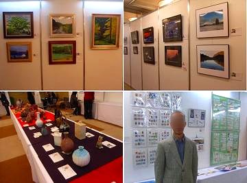 今日は、午前中は、日経パソコンや俳句の本を読んで過ごし、午後は、図書館で借りたビデオで「古畑任三郎」シリーズの一つを見た。夕方、OB会の文化展を見に行き、その後、24日に行われる職場OB会の準備会に参加した。「古畑任三郎」は、数学者が業績を一人占めしようと同僚の数学者を殺す事件だった。田村正和扮する刑事が、陣内孝則と水野真紀の引き起こす事件を解いて行く。長年の課題であった難問が解けたという想定は、現実の数学上の出来事とも符合するが、こんな殺人を犯してまで名声を手に入れようとする数学者がいるとは思えない。本編の中に出てくる「二ムゲーム」や本編の前の「指折り九九法」は、一般には珍しく、面白く紹介されているが、パズルではよく知られた事実だ。OB会の文化展は、6日の初日にも見たが、写真を撮っていなかったので、今日はいい作品の写真を撮らせてもらった。展示されている作品は、絵画60、彫刻6、陶芸12、書22、拓本1、写真38、手芸22、模型工作9、収集5、その他13であった。(カッコ内数字は出展者数、一人1~2点の出展なので出展作品総数は300点以上になる)下記は文化展風景から。絵画、写真、陶芸、収集。文化展 力作揃ふ 菊日和24日に開催される職場OB会の準備の打合せは、世話人各自の分担と当日の会の進め方などを決めた。現在のところ出席予定者は61名。打合せのあとは、近所の居酒屋「七輪」で歓談となった。