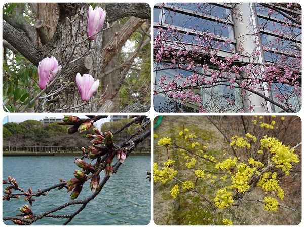 今日は、午後2時間ほど散歩をした以外は、一日中家にいて、ほとんどテレビを見ながら過ごした。テレビでは相変わらず新型コロナウィルスの問題が大きく取り上げられたいる。会合の中止や外出の自粛が求められてているので、趣味関係の仲間に会うことがまったくなくなり、何か物足りない欲求不満の日が続いている。今日の画像は、散歩のとき撮った写真で、紫目礼、ヨウコウ桜、染井吉野の蕾、サンシユ。大川沿いの桜は大阪城の標準木よりも1~2日早く咲くので、あと1~2日で開花すると思われる。