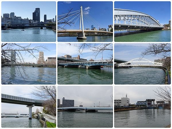 今日も、一時散歩に出た以外は、ほとんどテレビを見たり俳句を考えたりしながら過ごした。散歩は久しぶりに大川沿いを淀川まで歩いた。片道1時間、往復2時間の行程であった。花粉症を怖れていたが、大したことはなかった。大川沿いの公園にも、淀川河川敷にも、往復の大川沿いにも予想以上の多くの人出があり子供の姿を多く見られた。土曜日で町へ出てもどこも閉まっているので、屋外の広いところに出ているのであろう。私は、図書館、ビ実菅、博物館まで閉館にするのは行き過ぎだと思う。また、少人数の気心の知れた者同士の集まりまで自粛する必要はないと思う。怖くて出席したくない人は欠席すればいいのである。下の写真は、大川の橋を天満橋から上流に並べたもの。天満橋の二重橋、川崎橋、桜の宮橋(銀橋)、源八橋、都島橋、飛翔橋、阪神高速守口線高架橋と春風橋、毛馬橋、毛馬の閘門。下の写真は、今日撮った花。ガザニア、桜、タンポポ、イヌフグリ、?、?、?、バラ、ヒイラギナンテン。