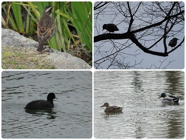 今日は、午前中は、通信句会のまとめに挿絵を入れ、プリントし、郵送までに作業を行った。午後からは、大川沿いを散歩した。いろいろな花や鳥を見たが、今日はジョウビタキを見た。ヒヨドリ、ツグミも何か所かで見ることができた。水鳥は数が減ったが、3日前と比べるとほとんど変わっておらず、まだ20数羽が残っているようだ。写真は、今日見た鳥。ヒヨドリ、ムクドリ、ジョウビタキ、ツグミ、スズメ、ハシボソガラス、カルガモ、オオバン、キンクロハジロとホシハジロ。