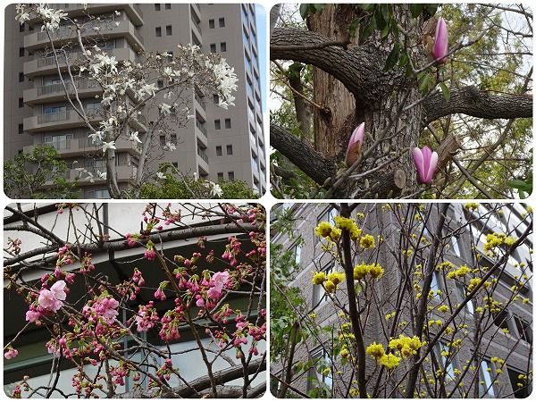 今日は、昼の外食を兼ねて、妻の買い物に付き添った以外は、ほとんど家にいて、テレビを見ながら過ごした。今日の写真は、マンションの庭で咲き始めた花たち。ヒメコブシ、紫木蓮、ヨウコウ桜、サンシユ