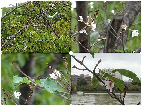 今日は、昼前から出かけ、昼食の外食を兼ねて、妻の買い物に付き添った。買い物の一つは、お節の予約であった。その他、国勢調査を記入して郵送したり、俳句を考えたりした。今日の写真は、大川の桜の返り花。