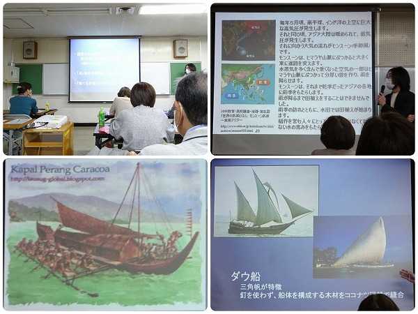 今日は、高大・世界史の7日目。午前中は、講義、午後は、クラスミーティングだった。講義は、「インド洋世界と東南アジアの国家形成」というテーマで、講師は冨田暁先生だった。紀元前からモンスーンという風を利用して、アウトリガーや帆船で海を行き来して、大陸から島しょ部に人は移り住み、交流をしてきた。その長年のいろいろな動きを歴史を2時間で講義された。細かいことは覚えられないが概要だけは分かった。写真は、講義の模様。クラス・ミーティングでは、班の研究テーマと各自分担する小テーマとを決めた。大テーマは「イスラームの歴史」、私の分担の小テーマは「イスラームと政治、民族」となった。登校の途中に、大阪城公園の十月桜を撮った。数は少ないがきれいに咲いている。下校の途中に、桃が池公園へ行った。
