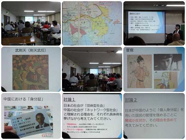 今日は、高大・世界史の9日目、午前中は猪原達生先生の講義で「女帝の時代」と題して中国・唐の時代の歴史を放された。午後は、中国の「身分証」についての紹介のあと、これに関する自由討議を行った。塔の時代のキーワードは、武則天、安禄山の乱、そして宦官制度であるとして、これを重点的に話された。唐は、安禄山の乱までは大きく領土を拡大したが、後半は、ウイグル、吐蕃、唐に分かれてしまった。午後の自由討議のテーマは、一つ目は、日本の社会が「団体型社会」、中国の社会が「ネットワーク型社会」と言われる訳。二つ目は、日本が中国のように、身分証制度を採り入れることに賛成か反対か。どちらも、難しいテーマだったが、いろいろな意見が出て、面白かった。写真は、午前の講義と午後の討議の模様。登校途中の大阪城公園の桜もまだまだ咲き続けている。今日は、旧暦の9月13日、今日の月は十三夜の月である。