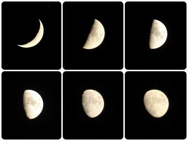 今日は、昨日の句会のまとめを行ったあと、午後から妻の買い物に付き添った。あとの時間は、テレビを見ながら過ごした。今日の写真は、20日から27日までの月。3日月、6日月、7日月、8日月、9日月、10日月。4日月と5日月は、雲に隠れて姿を現さなかった。