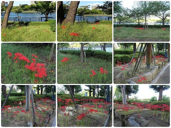 今日は、午前中は、築港の定例句会に参加し、午後は、家のビデオで、映画「晩春」を見たり、テレビを見たりしなが過ごした。句会の成績はまずまずで、5句出句のうち、先生から2句が選ばれ1句が特選、残り3句のうち1句は仲間から選ばれたが、2句は誰からも選ばれなかった。写真は、句会場へ行く途中で見た、大阪城北西の外堀付近で咲いていた彼岸花。映画「晩春」は昭和24年上映の小津安二郎監督の映画。主演は、笠智衆、原節子。