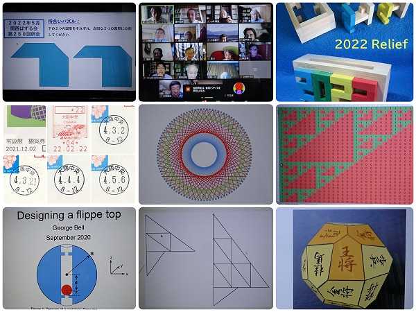 今日は、午前中は、テレビを見ながら過ごし、午後は、関西ぱずる会のオンライン例会に参加した。例会は、2時に始まり、4時半ごろ終わった。例会には19人が参加し、10人から発表があった。発表は、パズル玩具、オリジナルパズル、数学ゲーム、言葉遊び、数字遊び、パズル書、マジック、だまし絵ほか、広い分野のものが発表された。私も並び数日の郵便日付印などについて発表した。写真は、例会の様子。