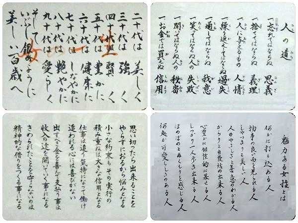 今日は、午前中は、高大の社会参加活動の一環として見学に訪れる予定の「暮しの今昔館」に予約の電話を入れたり、俳句を作ったりしながら過ごし、昼前から、妻の美容院行きと病院行きに付き添った。帰る途中で、遅い昼食を取り、その後スーパーで買い物をして帰宅した。今日の画像は、美容院の壁に貼ってあった人生訓めいた言葉。