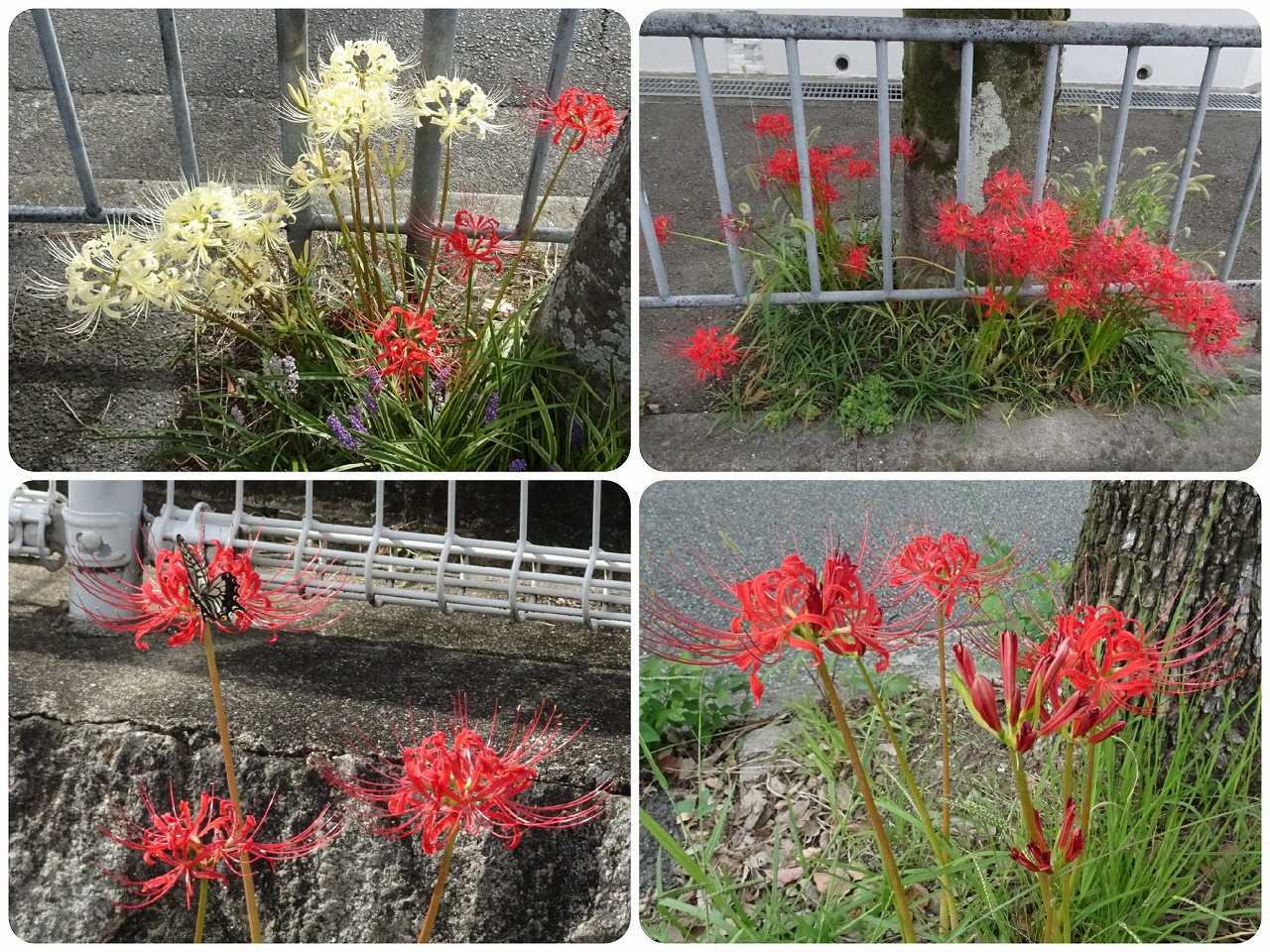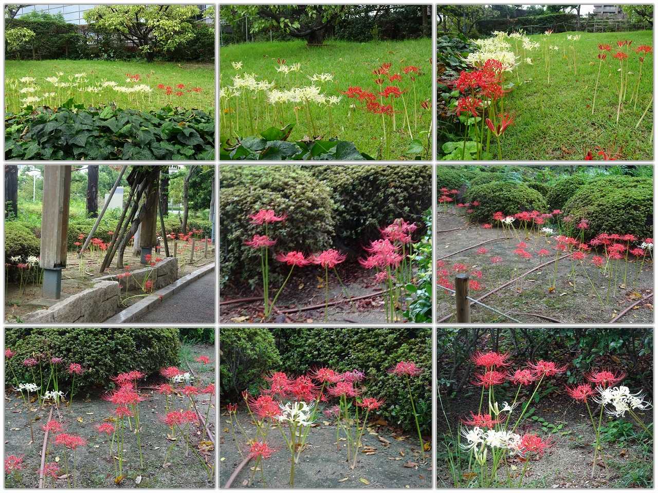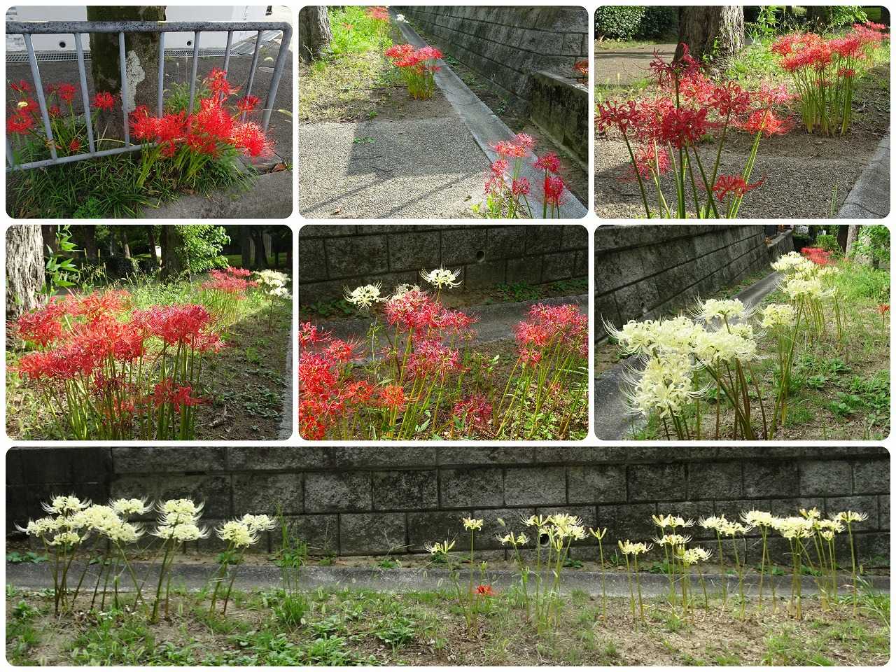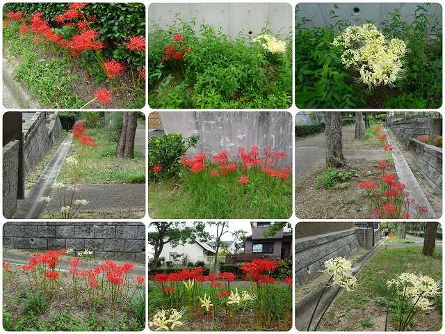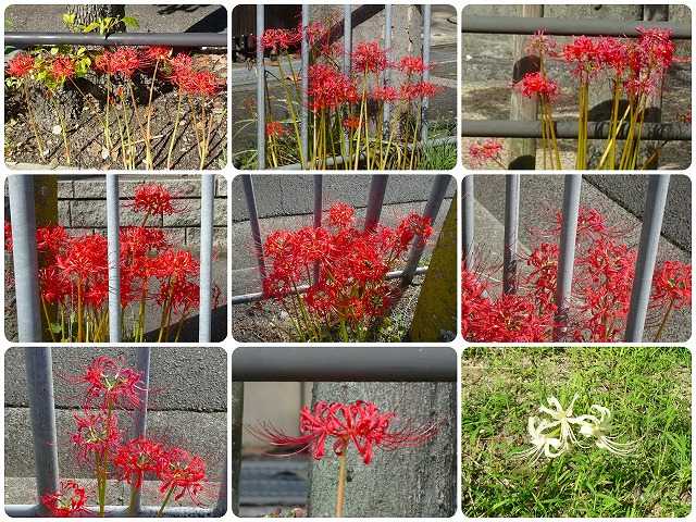 今日から10月となった。朝夕は確かに涼しく、ときには寒いくらいになったが、日中はまだ暑い。午前中は、施設のイベントで音楽鑑賞会に参加し、午後は、散歩をかねて、施設の外の散髪屋に行った。また、今日は、昼食に出かける直前に妻が転倒し、両手の手の甲を擦りむく怪我をした。音楽鑑賞会は、レコードを流し、それを聞くもので、30分と短いが、いい気分転換にはなる。散髪屋は施設内にもあるが、営業が土曜日だけのため、土曜日に都合が付かない場合は利用しにくい。そこで、施設の外の理髪店を探していたのだが、徒歩15分くらいのところに一軒見つけ、そこへ行ってみた。高校卒以来、30年にベテランで、まあまあの腕のようである。その道中で、多くの彼岸花が咲いていたので、カメラに収めた。これまで、このブログで発表したことのない場所のものである。妻の転倒は、ちょっとした不注意で起こったが、血が出たため、施設の看護師さんを呼んですぐに手当をしてもらったので、医者にも行かずに、快方に向かっているように思う。