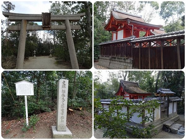 写真は、鳥居、交野天神社本殿、樟葉宮跡碑、貴船神社。