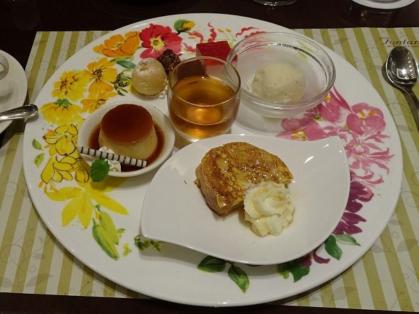 11時から始まり、途中15分の休憩があり、終わったのは13時15分であった。ランチは、洋食の準フルコースで、オードブル、サラダ、スープ、肉料理、パンのあと、コーヒーとデザートが出たが、そのデザートのボリュームの多いこと。写真を参照。