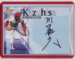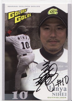 友人とふらついていた時に話題にのぼって買ってしまいました。それは茨城ゴールデンゴールズセット。普段あまりカードに興味がない友人ですが、なぜか今回は運試しで買ってみようということになりお互い1つずつ購入。友人は単に欽ちゃんのサインがほしかったとのこと。で、結果は友人みごとにご当選見事1箱で欽ちゃんゲット。私は、ある意味あたりでした。 片岡でました。ははははは。なんか変なところで当たりを引きます。複雑です。