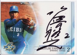 はやくもおかわりしてしまった。西武30周年。お土産で近くのお店つまんだパックから 【西武30周年 山崎裕之 横オート】おおお。山崎さん。70sでも引かせていただきましたね。種別がちがいますが、2枚目の山崎さんオート。そしてまたまたお店でBOX開封。本日1BOX目カパッとペリペリペリペリペリ証明書。しかも縦。 【西武30周年 橋本武広 縦オート】橋本さんの縦。この人も印象深いな~。いい中継ぎでした。しみじみしながら2BOX目ペリペリ青い証明書登場。 【西武30周年 森山良二 横オート】森山さん。残念ながらあまり記憶にないですね。申し訳ないな~。ここまでは好調。さて次は?3BOX目ペリペリペリペリペリペリあれ?なんかとっても良く滑る?キラキラしている。 西口50シリアル。シリアルでした。まあまあ、コレだけ引いてたらシリアルもでますね。でもなぜにカートン1しかない50シリなのか。ツキがあるということなのかな。4BOX目ペリペリ青いのが見えた。シリアルか?いえいえ、直筆証明書でした。 【西武30周年 新谷 博 横オート】新谷さん。郭とよく似ていて間違えます。強かったなー。非常に強かったな。新谷さんが投げている頃。憎たらしいくらいでした。5BOX目あら、早々に証明書が。しかも縦?枚数も25。たくさんいますよ。この枚数は誰でしょう????へ?あなたは・・・・・ 【西武30周年 石毛宏典 縦オート】石毛さーーーーーーん。25枚でうっすーーーーーーい中私のところに2枚目が現れました。こんだけ人数がいて、まさかの縦のダブリ。もしかして愛されている?????6BOX目中盤からキラキラしたものが登場。はい。シリアル登場。枚数は150枚。 【西武30周年 清原和博 150シリアル】清原さん150シリアル。150シリの中で大当たりの選手。ラッキー。でもシリアルで終わるのはなんかいやだなー。これだけオッズがいいんだ。オートで終わりたいなー。わがままな理由で追加。ラスト7BOX目ペリペリペリよっしゃーーーーーー。青色直筆証明書。さて枚数は・・・・・・・・73。これも1人しかいません。しかも西鉄でも引かせてもらったこの人。 【西武30周年 東尾 修 横オート】ケンカ投法の東尾さん。投げている印象よりも酒飲んで酔っ払っている姿の印象が強いのは私だけ???最後にいいカード引けて大満足。